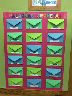 Hoy la brujita Tapita nos ha vuelto a hacer una de sus travesuras. No sabemos cómo ni cuándo pero se ha colado en nuestro cole y, como siempre, no hemos podido verla. Nos ha dejado un sobre en nuestro buzón con las sílabas de unas palabras desordenadas. Hemos imaginado que formaban un mensaje o algo que quería que aprendiéramos. ¡Les encanta recibir cartas en nuestro buzón! Hemos sacado todo lo que había dentro del sobre y las hemos clasificado por colores. La seño, que es muy lista, jeje, les ha contado que por lo que ella imaginaba, al ordenarlas formaban los nombres de los reyes que vivieron hace muchos años en nuestro pueblo. Entonces hemos intentado pornerlas en orden para formar el nombre de estos reyes. Después de aprender los nombres de nuestros reyes, hemos hecho la ficha copiando de la pizarra y recortando sus fotos para pegarlas en el lugar que correspondía. ¡Seguro que no se nos olvidan los nombres de nuestros reye...